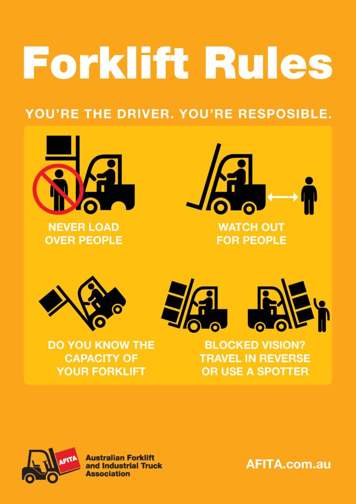 These posters have been developed by AFITA with the aim to support safer workplaces and improve Workplace Health and Safety standards for the operation of fork trucks.